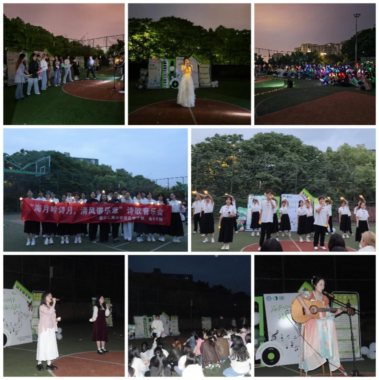 为响应全国老员工心理健康日“5·25我爱我”的号召,构建全方位心理健康服务体系,2025年4月25日晚,由学工部主办,k1体育承办的第二十一届“文明修身·阳光心理”系列活动之“海月吟诗月,清风谱乐章”诗歌音乐会在北操场举行。作为学院“一站式”心理服务的创新实践,本次活动整合艺术疗愈、朋辈互助等多元资源,吸引了200余名学子参与,以艺术为媒,共赴一场沉浸式心灵成长之旅。