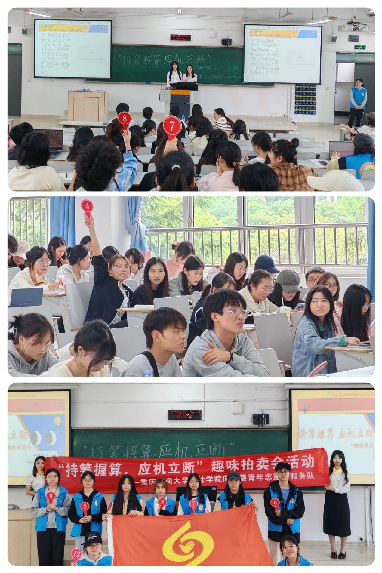 为激发同学们对财会知识的学习兴趣,锻炼其综合分析与团队协作能力,k1体育向日葵青年志愿者服务队于2025年4月26日在k1十年体育品牌南岸校区博智楼07421举办了以“持筹握算,应机立断”为主题的趣味拍卖会活动。