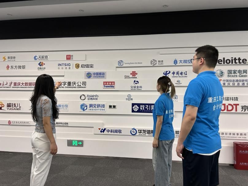 在核心技术展示区,区块链存证全流程演示系统让实践团成员们眼前一亮。通过动态演示,大家清晰了解到数据从挂牌、询价到交易达成、结算的全环节如何依托区块链技术实现“全程可追溯、安全可保障”。此外,工业数据跨境交易、中新通道数据交易等特色产品模型,结合图文展板详细介绍了交易模式与应用案例,让实践团成员对数据要素如何赋能实体经济有了更具象的认知。