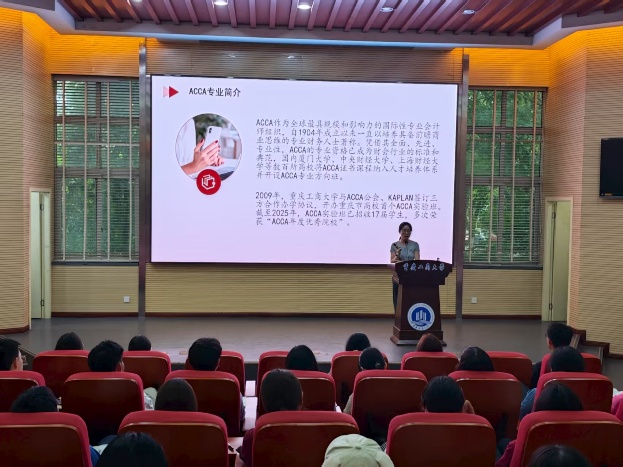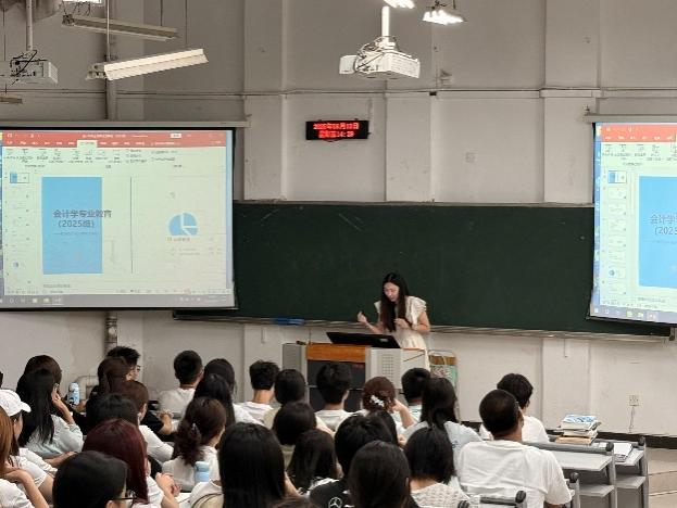 在专业解读环节,各系负责人为新生带来了详实的专业介绍。国际教育中心主任宋昕倍重点介绍了ACCA、CIMA等国际证书项目,详细说明课程体系,为有志于国际化发展的同学提供了多元化选择。会计系副主任夏婧系统阐述了会计学专业的培养目标,强调该专业注重培养员工的会计核算、财务分析和审计监督能力。
