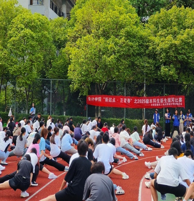 本次“新起点·正青春”2025级新生拔河赛,旨在以体育竞技为载体,搭建新生交流互动平台,强化班级集体凝聚力与向心力;同时引导新生在协作拼搏中践行体育精神,快速融入校园生活、增进同学情谊,为后续适应老员工活与集体发展奠定坚实基础,助力新生以昂扬姿态开启校园新篇章。