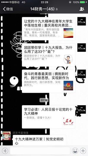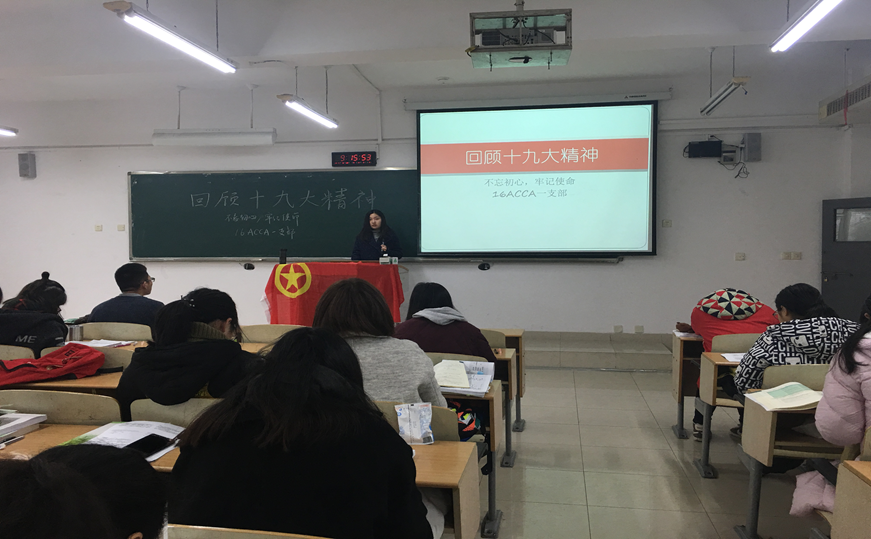 其中,2017年12月19日,15CIMA支部于南岸校区博智楼07605教室,以学习十九大精神为主题开展了团日活动;2017年12月22日,2016级ACCA支部于南岸校区博智楼07201教室举行了以“回顾十九大精神——不忘初心,牢记使命”为主题的团日活动;2017年12月25日,14财务一支部展开了“学习十九大,从点滴做起”的讨论活动。这些活动回顾了十九大相关知识,让大家进一步理解了十九大重要精神以及党中央治国理政新理念新思想新战略等。十九大报告指出中国社会主义将进入新时代,这是我国发展新的历史方位。这个时代是承前启后,继往开来,在新的历史条件下继续夺取中国特色社会主义伟大胜利的时代。