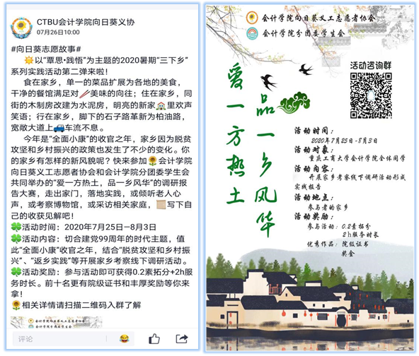 为深入贯彻习近平总书记青年精神讲话内容,将建设“社会主义和谐社会和社会主义新农村”的重要思想落到实处,同时引导广大青年学子将所学专业知识运用于实践,培育德智体美劳全面发展的新时代青年,k1体育向日葵义协与k1体育分团委员工会携手举办以“覃思 . 践悟”为主题的2020暑期“三下乡”系列实践活动。