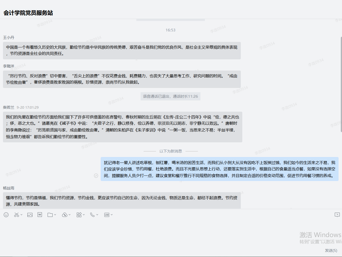 党的十八大以来,习近平总书记一直高度重视粮食安全,提倡“厉行节约、反对浪费”的社会风尚。为贯彻落实习近平总书记重要指示精神,进一步弘扬中华民族勤俭节约的传统美德,在全校形成勤俭节约的良好风尚,公司党员服务站邀请了2019级审计专硕胡赫同学进党员服务站召开主题线上讨论会。