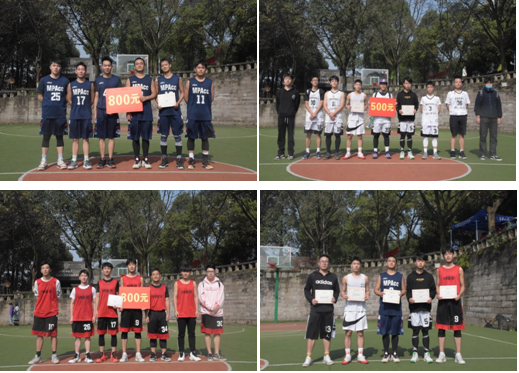 随着哨声的吹响,比赛落下帷幕。最终,研究生联队以62:40获得了本届篮球赛的冠军,国际项目联队获得亚军,19会计联队以53:43夺得季军,大四联队荣获道德风尚奖,李冉旭荣获最有价值球员,王恩辉荣获最佳裁判员。