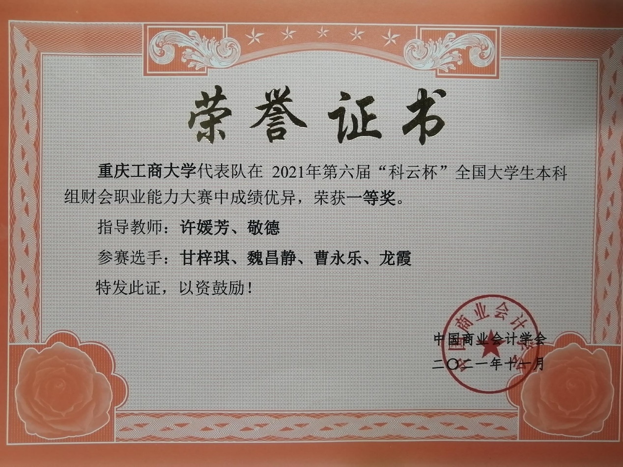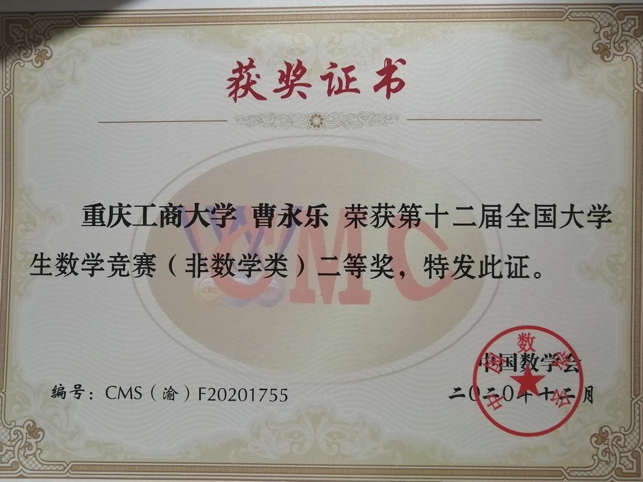 入校以来,荣获奖学金、荣誉及各类奖项共计22项,其中包括国家励志奖学金、天健奖学金、重庆市企业大数据智能决策竞赛一等奖、全国老员工英语竞赛三等奖、全国老员工数学竞赛(重庆赛区)二等奖等。