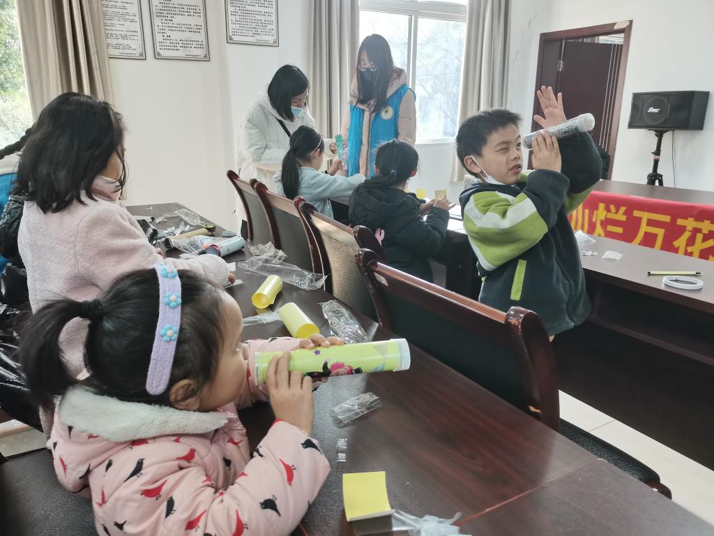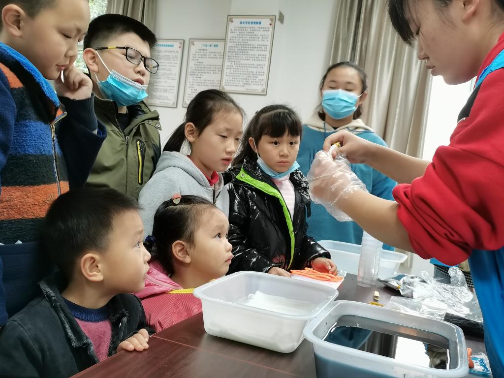 扎染活动中,青少年学习扎染的文化,了解扎染的几种扎布方法,对传统技术有了更深入的了解;牛奶山水画实验课堂上,青少年动手滴入五颜六色的墨水,利用洗洁精和牛奶的化学反应,绘制出美丽的山水画;万花筒活动中,青少年通过转动自己制作的万花筒,观察光学的神奇之处……家长也在活动开展中陪伴小朋友,记录下小朋友愉快欢乐的笑脸,对这一类的志愿服务表示支持。志愿者虽然都是已经成年的老员工,但也会被活动现场的氛围所吸引,沉浸式参与进活动当中,更有甚者,志愿者与小朋友建立了良好的友谊,互相畅谈,完成了跨年龄的友谊碰撞!