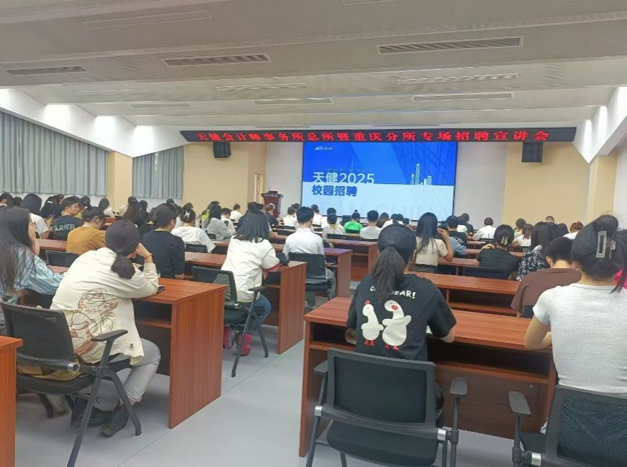 宣讲会首先以视频的方式,系统展示天健发展四十年以来所取得的成就、发展现状和未来发展目标,随后,潘总从天健的基本情况,人才开发培训,员工职业发展等六方面展开,对天健事务所内部员工培训,学位深造等进行了详细介绍。许静女士介绍了重庆分所招聘人数计划,并提出四点招聘要求,此外,他们还表示,员工的创新和管理思维是提高个人职场竞争力必不可少的思维模式,实习中持之以恒的工作态度也必不可少。