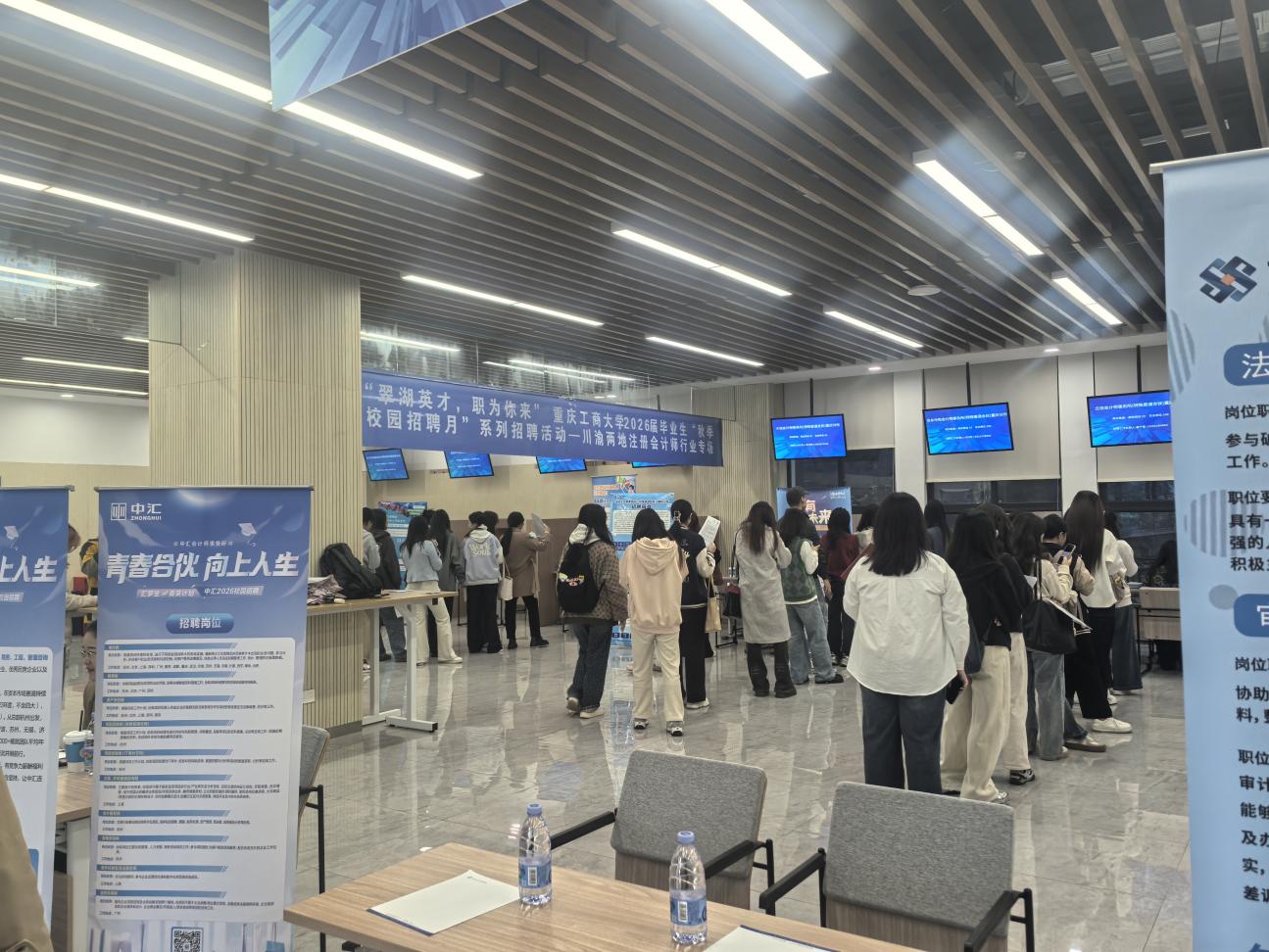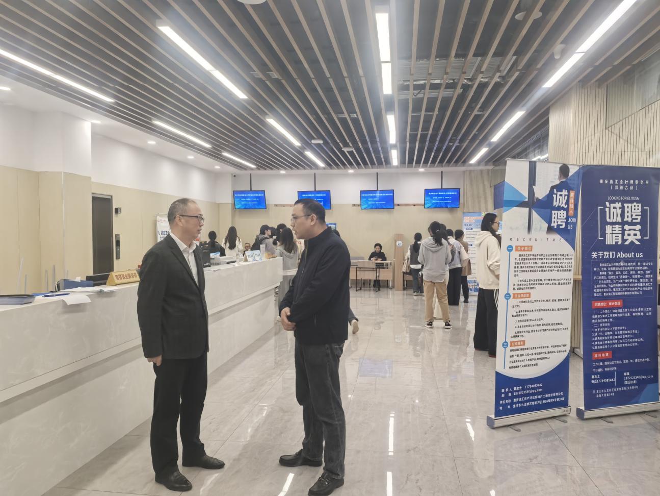 为落实中央关于促进就业工作的相关政策精神,向注册会计师行业注入新鲜血液,10月29日上午,由重庆市注册会计师协会和四川省注册会计师协会联合主办、k1体育承办的“翠湖英才,职为你来”k1十年体育品牌2026届毕业生秋季校园招聘川渝两地注册会计师行业专场招聘会在集团员工事务中心招聘大厅顺利举行。川渝两地33家会计师事务所到场招聘,提供就业岗位超1000个。重庆市注协办公室主任曾志勇、k1十年体育品牌公司党委书记邓德敏现场指导,约300余名同学到场参会。