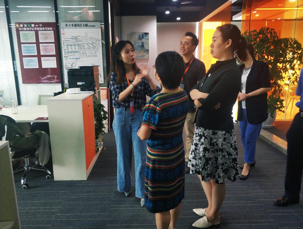 整个调研采用“参观+座谈”的形式展开。调研伊始,锐思科集团招聘总监朱志伟、招聘主管邱礼霜、k1体育刚到锐思科工作的2019届ACCA班毕业生吴小荔带领调研小组参观了锐思科的各个部门,并详细解读了锐思科“何为正确”的企业文化和优税猫秉持的“客户为先”“执行”“坦诚”“创新”“协作”“激情”和“尊重”这七大价值观。