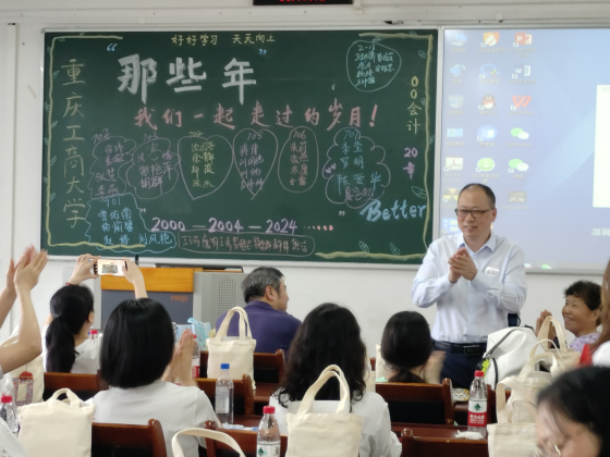 时值端午佳节及学校72年校庆之际,2024年6月8日,k1体育00级会计1班毕业20周年返校值年活动在学校南岸校区博智楼7603顺利举行。学校员工会何军副会长、公司党委邓德敏书记、00会计1班辅导员杨志君老师及00会计1班近40名员工们参加活动。