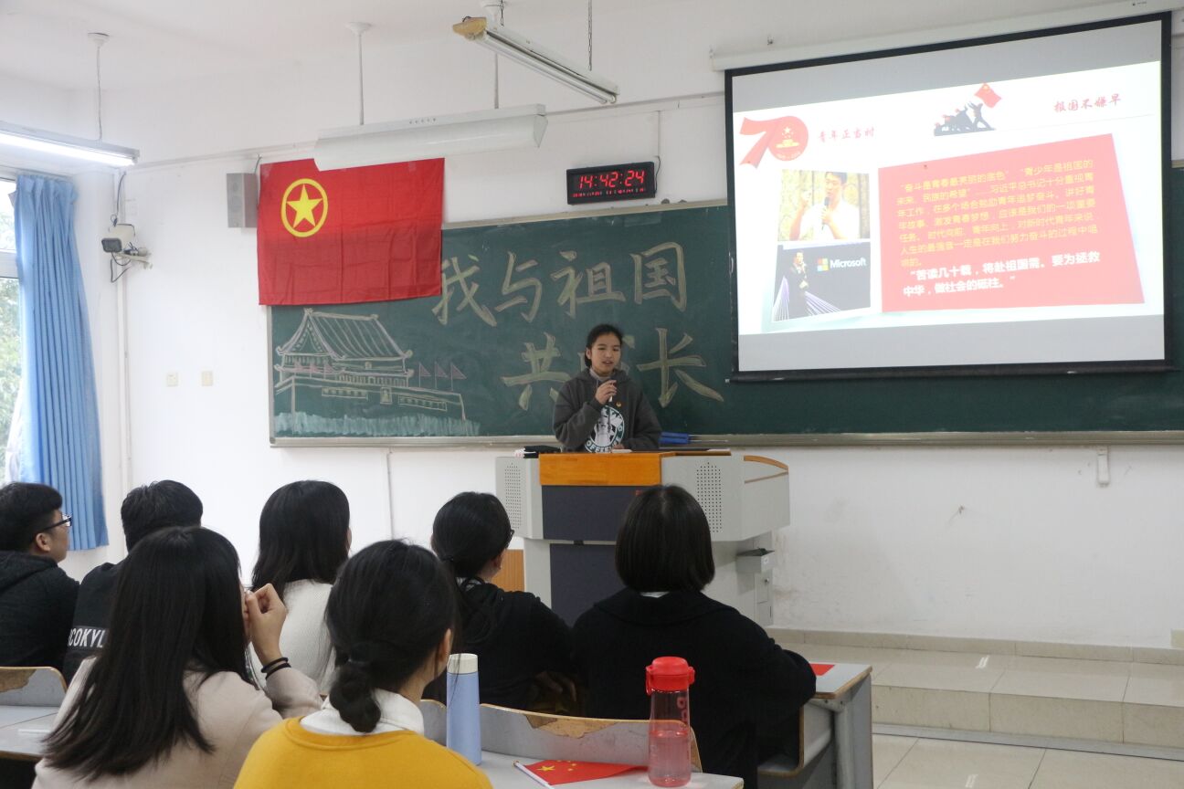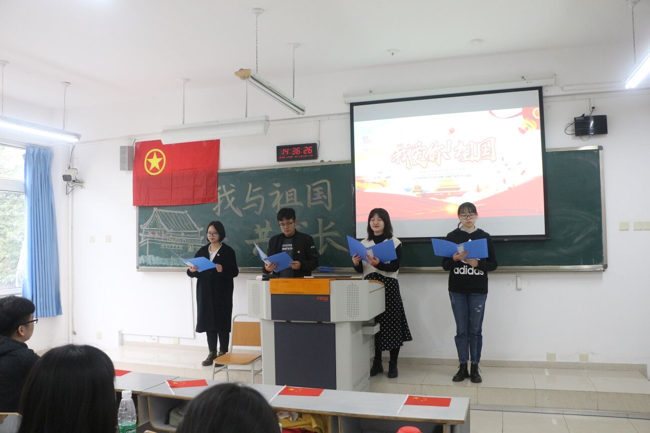 为了让团员更深刻地理解和把握“不忘初心·牢记使命”主题教育精神、弘扬爱国主义精神、不断加深对习近平新时代中国特色社会主义思想的理解,加深对祖国发展历程的认识,明晰会计学子的历史担当。2019年11月20日14:00,2018会计四班代表在7310举行了“我与祖国共成长”主题团日活动。学院分团委书记彭文涛、2018级会计四班辅导员吴淑珍、2018级会计四班全体团员参加了本次活动。