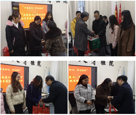 座谈会后,学院领导为员工代表分别发放了慰问品。