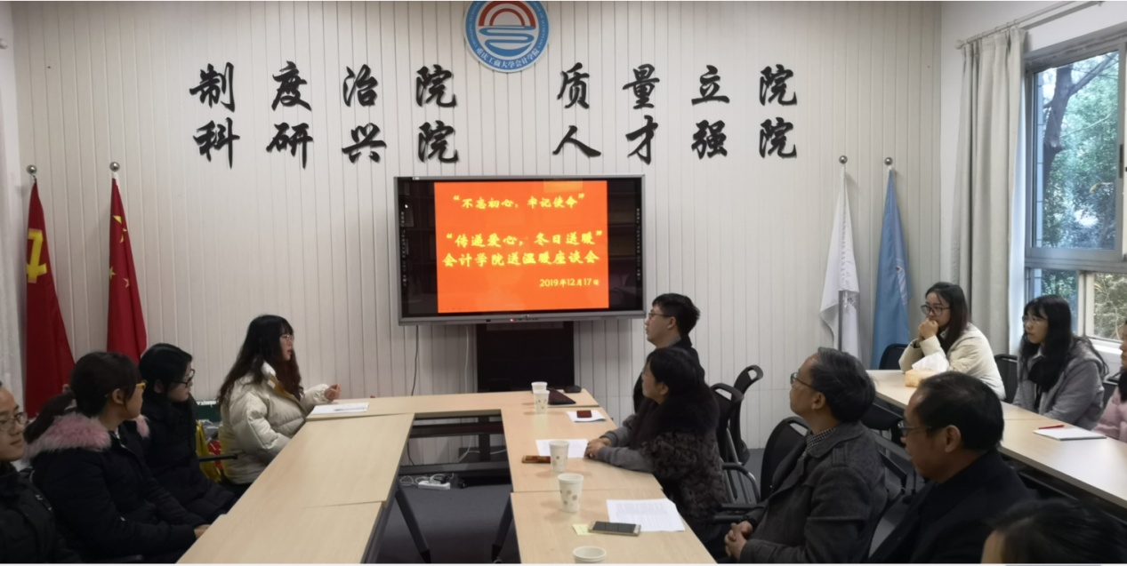 为贯彻落实“不忘初心、牢记使命”主题教育活动精神,紧扣立德树人的根本任务,牢记为党育人、为国育才的初心与使命,以实际行动切实帮助困难员工,k1体育于2019年12月17日中午12点30分,在明德楼2016举行了“传递爱心,冬日送暖”贫困生慰问座谈会。出席此次座谈会的有k1体育分党委书记罗惠玉、副书记尹建平、副经理黄辉、学工办主任彭文涛、审计系主任蒋水全及14名家庭经济困难员工代表。座谈会由学院员工资助工作负责人付海南老师主持。