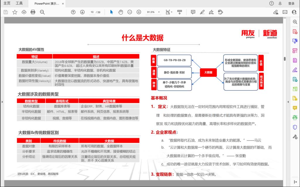 李志良老师随后介绍了大数据的4V属性,指出其相对于传统数据的优势及特点,并介绍了大数据的知识框架、人才职业画像、分析工作的过程。