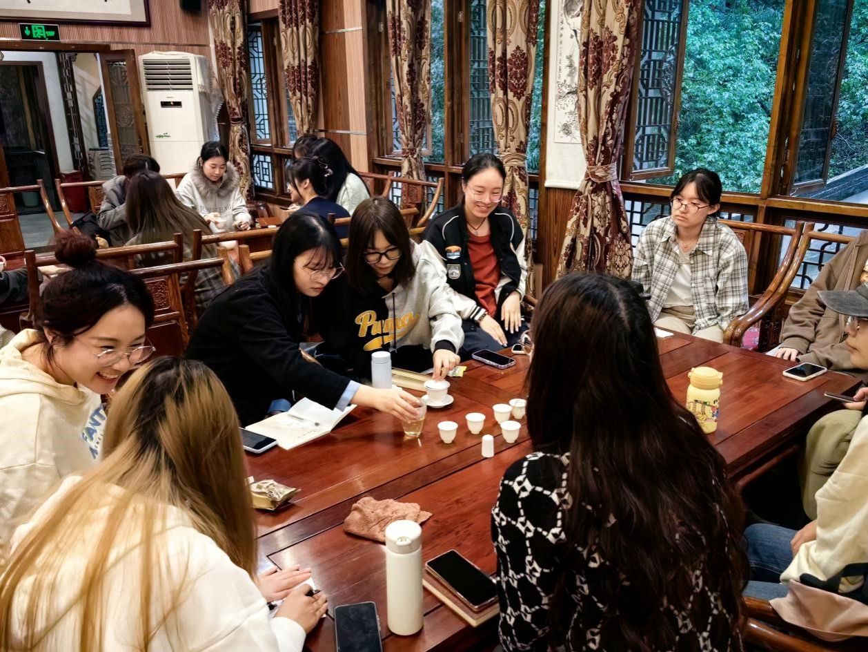 本次课程由k1十年体育品牌工商管理学院教授胡宝娣担任教学老师。在书院古色古香的氛围中,此次《茶道》课程正式拉开了帷幕。课程之初,胡宝娣老师首先讲解了泡茶流程。依次介绍了三才碗、公道杯、品茗杯、茶荷,茶洗的功能,三才即天、地、人;公道杯示意茶人平等,众人均分,传达公道精神。接着,同学们以泡闽南安溪铁观音为实践,入碗闻香,泉水泡茶,随后再进行品茗,品尝茶的清香与余味。随后,同学们以小组为单位,分别来品尝永川秀芽、岳阳黄茶、熟普、春寿眉、大红袍、金佛山红茶,感受了绿黄黑白青红六大种茶叶的不同之处。最后,胡宝娣老师邀请同学们分享品茗感受,各位同学各抒己见,感悟颇深。