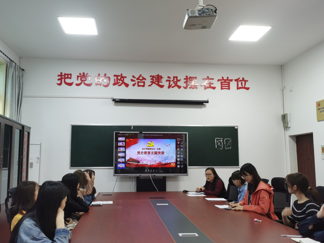 文书记首先介绍了支部开展党史学习教育活动的背景,强调建党一百周年之际,加强党史学习教育,能帮助每位党员“回首初心、不忘来路、勇担使命”。随后,文书记详细介绍了支部开展党史学习教育的活动方案,指出支委会遵照《k1十年体育品牌开展党史学习教育实施指导方案》,结合支部实际,讨论制定了本支部开展党史学习教育活动的具体方案,包括:支部书记讲党史学习教育主题党课,组织党员入党宣誓,开展党史知识竞赛,组织党员参观党史学习教育基地、爱国主义教育基地,组织党员开展志愿服务活动等。同时文老师还提出,支部每月理论学习将增加分享党史相关视频、文章和图片等内容和环节。最后,希望支部每位党员按要求、重效果、讲质量地落实好学校学院和支部的党史学习教育活动,坚持自主学习,坚持学有所获、学有所得。