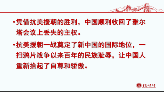 培训会一开始,k1体育分党委罗惠玉书记以“抗美援朝:不能忘却的伟大胜利” 为主题,带领大家重温了抗美援朝那段历史。罗惠玉书记从1953年的开罗会议、1944年的豫湘桂战役、1945年的雅尔塔会议、1945年中华民国与苏联签订的《中苏友好同盟条约》等历史大事件,分析了中国当时处于的丧权辱国、受西方列强控制的历史背景。到1949年签订中苏新条约后,我国的情况有了一定的改观,但仍未能摆脱独立、真正矗立于世界之林。一直到抗美援朝战争取得了决定性的胜利,打败了以美国为首的16国集团,我国才顺利收回雅尔塔会议丢失的主权,真正在世界格局中战立起来,奠定了新中国的国际地位。罗书记总结了抗美援朝的伟大意义:抗美援朝战争保卫了刚刚诞生的中华人民共和国的安全,打出了新中国的国威军威,极大提高了我国国际地位,增强了中国人民的民族自信心和民族自豪感,为世界和平和人类进步事业作出了巨大贡献。
