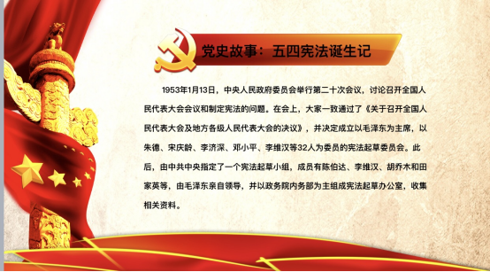 石恒贵还给大家讲述了我国“五四宪法”的诞生。他从1953年1月13日中央人民政府委员会第20次会议讨论制定宪法开始回顾。1954年2月17日宪法草案初稿形成并送中央有关领导二读(审)、三读。1954年3月8日中央政治局扩大会议通过了“四读稿”。1954年3月23日,宪法起草委员会召开了第一次会议,讨论宪法草案。直到1954年6月11日,宪法起草委员会召开第七次会议,一致通过了宪法草案,并提交中央人民政府委员会讨论。最后,在全国范围内广泛征求意见,搏采众长,集思广益,在1954年9月20日的第一届全国人民代表大会上一致通过第一部《中华人民共和国宪法》。