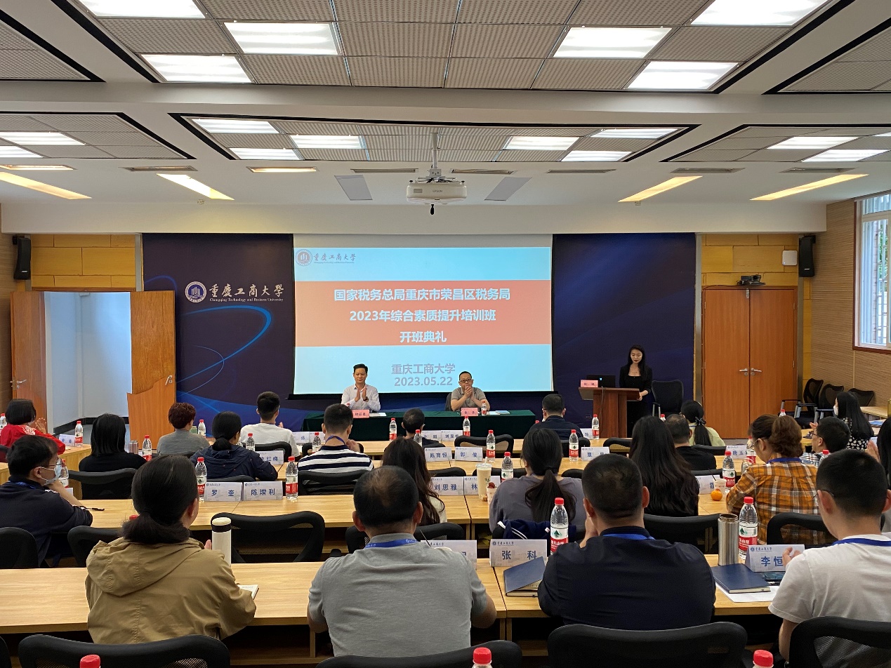 2023年5月22日下午,国家税务总局重庆市荣昌区税务局2023年综合素质提升培训班(二期)开班仪式在公司博智楼7108会议室举行。国家税务总局重庆市荣昌区税务局党委委员余多、k1体育副经理钟廷勇及全体学员出席开班仪式。