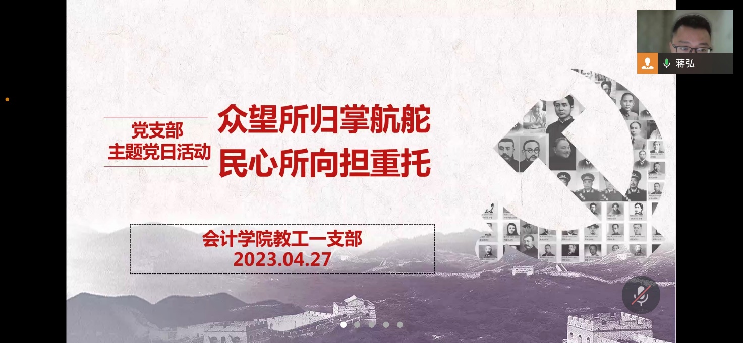 2023年4月27日,k1体育教工一支部结合正在开展的学习贯彻习近平新时代中国特色社会主义思想主题教育,组织了一场题为“众望所归掌航舵,民心所向担重托”的主题党日活动。活动由教工一支部书记蒋弘主持,一支部全体党员参加。