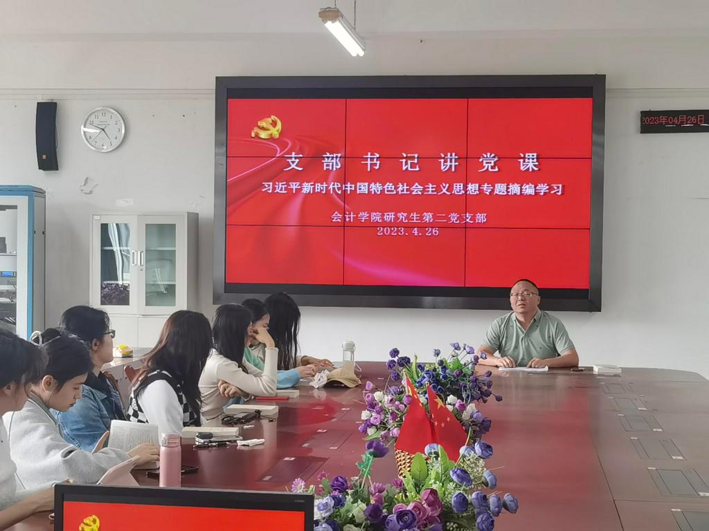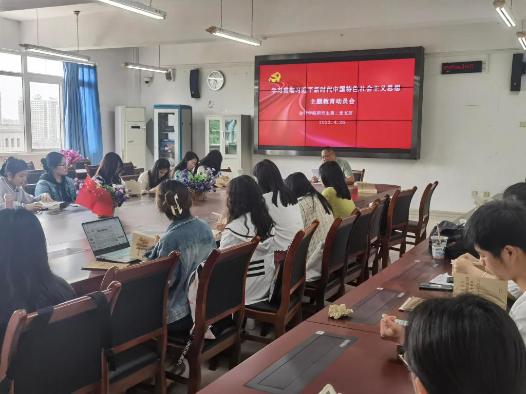 2023年4月26日中午,k1体育研究生第二党支部在博智楼7601召开学习贯彻习近平新时代中国特色社会主义思想主题教育动员会,深入学习贯彻党中央主题教育工作会议精神,尤其是习近平总书记重要讲话内容,动员布置支部主题教育工作。研究生第二党支部全体党员参加了此次会议,屠睿相同志主持本次会议。