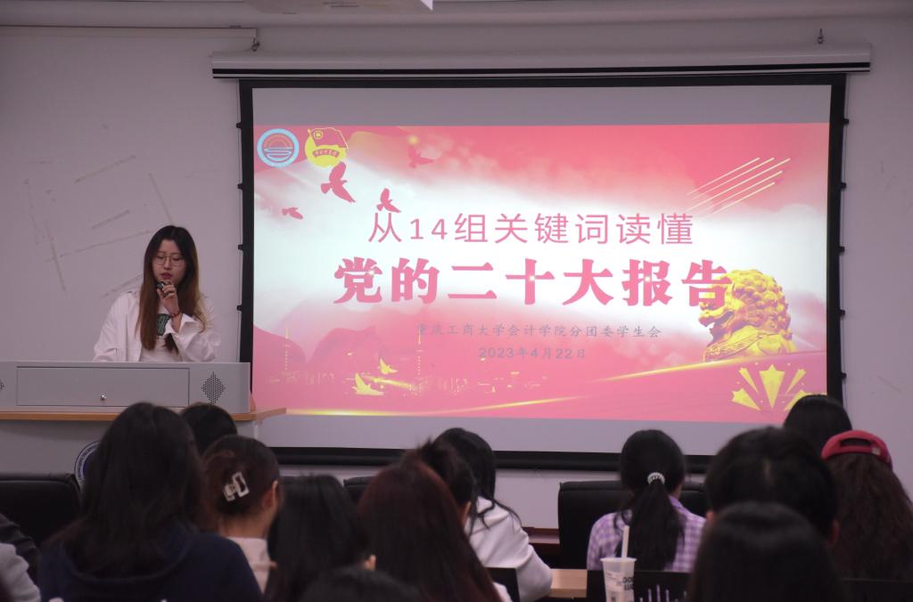 首先,李悦琨同学从大会的主题、新时代十年的伟大变革、极不寻常、极不平凡的五年、三件大事、马克思主义中国化时代化新境界、中国式现代化、实施科教兴国战略、强化现代化建设人才支撑、坚持全面依法治国、扎实推进共同富裕、推进国家安全体系和能力现代化、开创国防和军队现代化新局面、坚持和完善“一国两制”,推进祖国统一、推动构建人类命运共同体等14组关键词学习党的二十大报告。