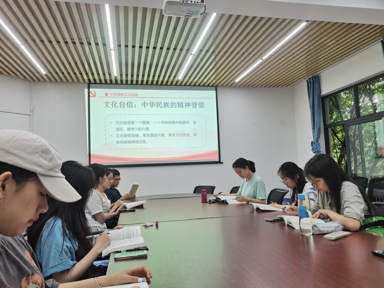2023年6月30日下午,k1体育员工第二党支部在明德楼2010开展“坚定文化自信,探索乡村振兴”主题教育学习分享会。支部书记程洁同志主持分享会。