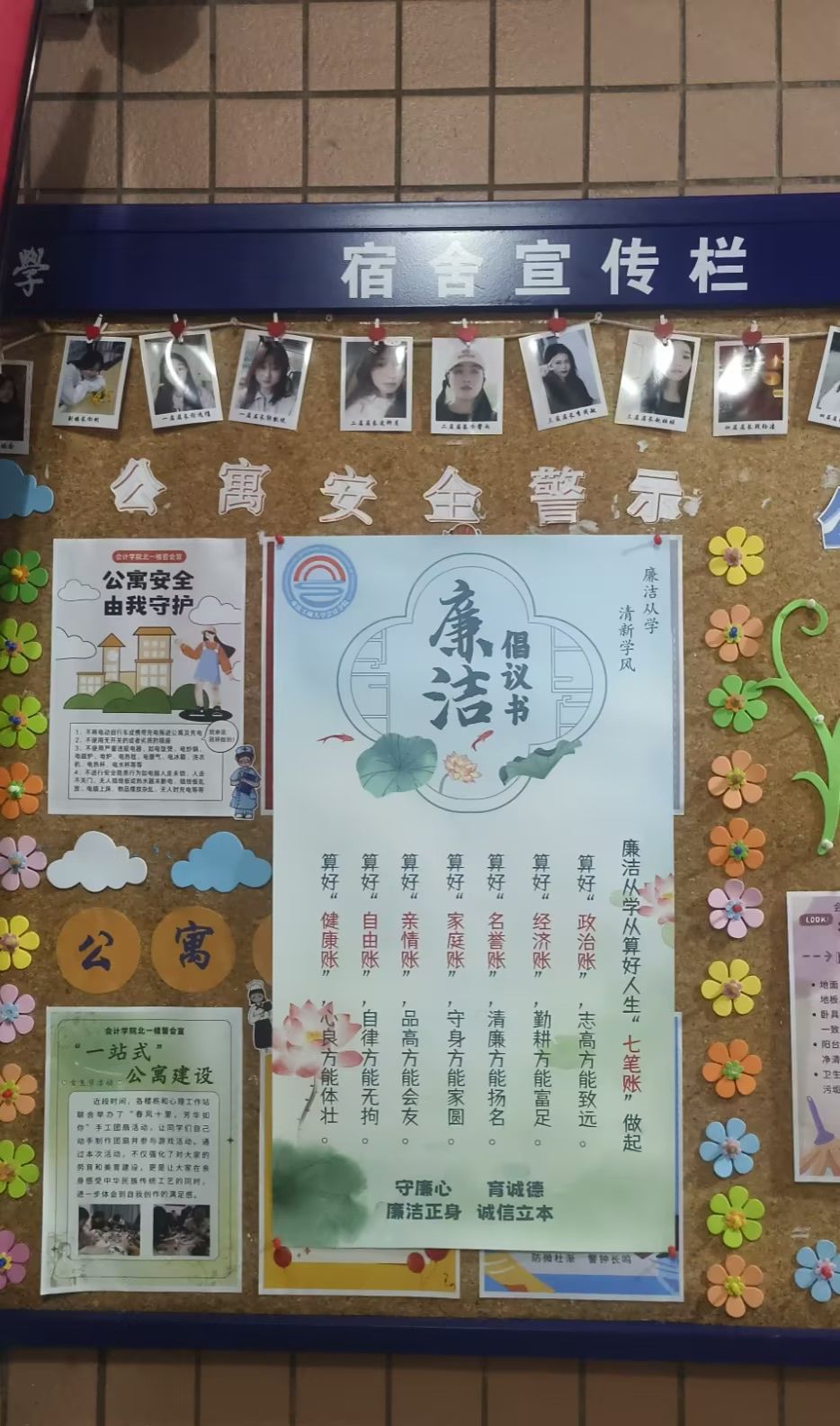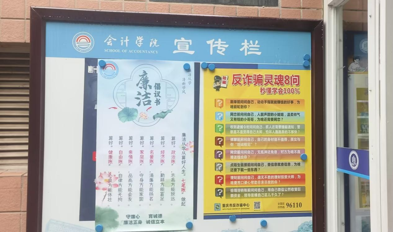 倡议活动线上线下同时进行,线上通过企业微信公告发送至全体师生,线下倡议书则粘贴在楼栋宣传栏、学院公告栏等人群聚集地。线上线下协同发力,织密织细倡议影响力。